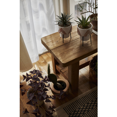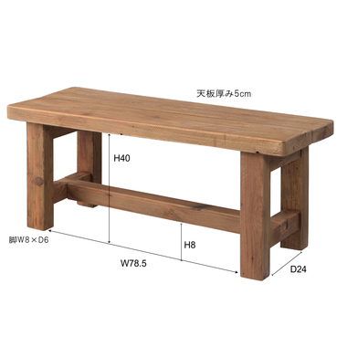 重厚感・重量感のある風合いが魅力的なテーブルとベンチ。