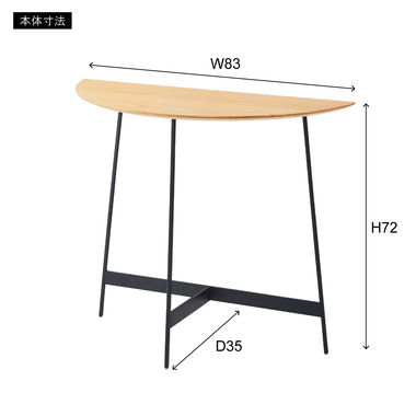 ●美しいシンメトリーフォルムで、天板が半円なので様々な場面で活躍。