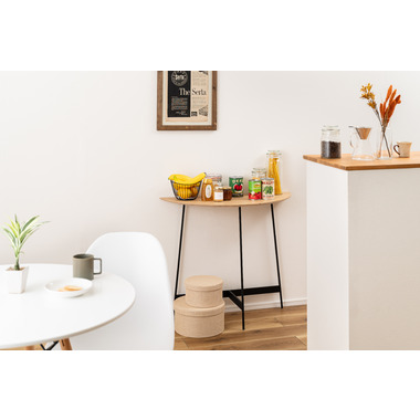●半円型の天板は壁に寄せてレイアウトしやすく使いやすいのがポイント。